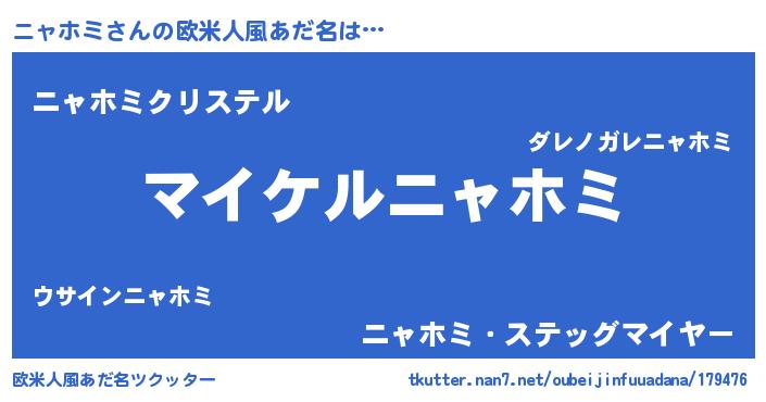 | 男性向けラノベタイトル風あだ名 | 『ニャホミの憂鬱』『魔弾の王とニャホミ』 |