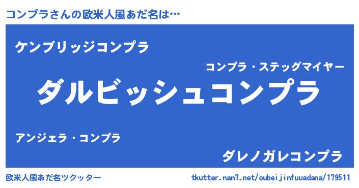 | 胡散臭い通販商品みたいなあだ名 | 『来世でも幸せになれる健康食品…その名も「コンプラ」』 |