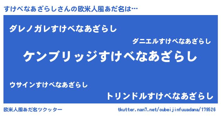 | 男性向けラノベタイトル風あだ名 | 『Re:すけべなあざらしから始める異世界生活』 |