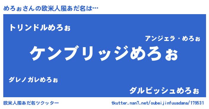 | 男性向けラノベタイトル風あだ名 | 『Re:めろぉから始める異世界生活』 |