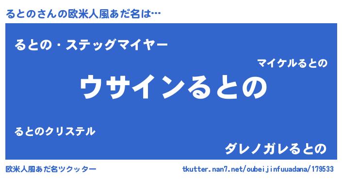 | 女子向けラノベタイトル風あだ名 | 『るとのの卵を拾いまして』 |