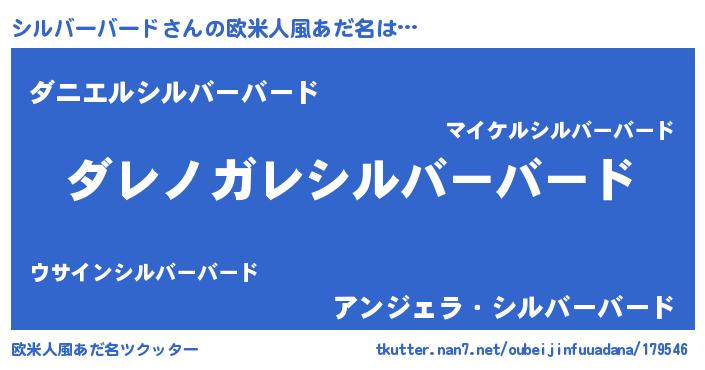 | 男性向けラノベタイトル風あだ名 | 『この素晴らしい世界にシルバーバードを!』 |