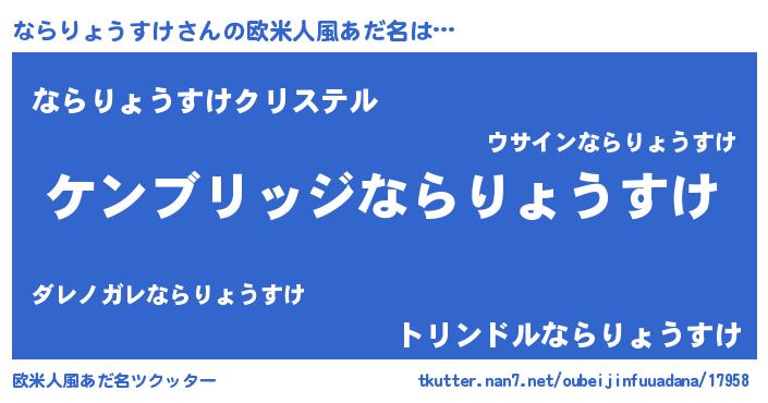 | 男性向けラノベタイトル風あだ名 | 『Re:ならりょうすけから始める異世界生活』 |
