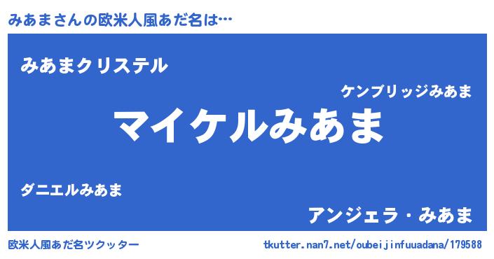 | 男性向けラノベタイトル風あだ名 | 『みあまの憂鬱』『はたらくみあまさま!』 |