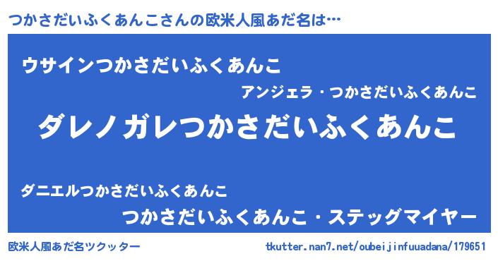 | 意味不明あだ名 | 『住所不定無職つかさだいふくあんこ(43歳)』 |