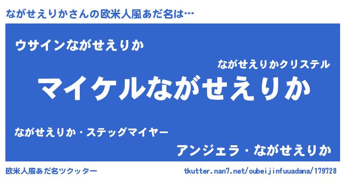 | 女子向けラノベタイトル風あだ名 | 『誰かこのながせえりかを説明してください! ~契約から始まるウェディング~』 |