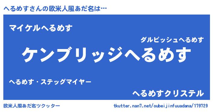 | 意味不明あだ名 | 『自称へるめす』『ペロリンへるめす』 |