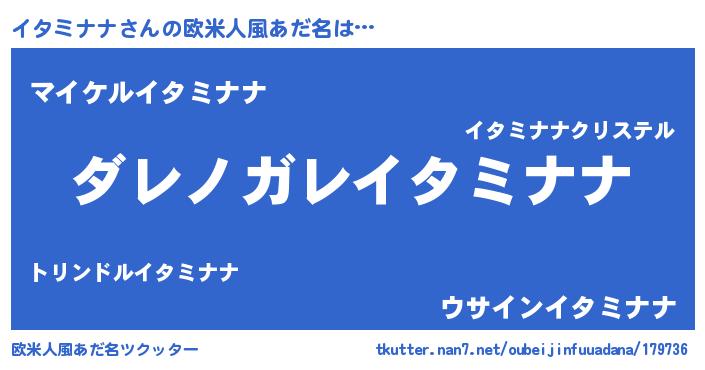 | 男性向けラノベタイトル風あだ名 | 『この素晴らしい世界にイタミナナを!』 |