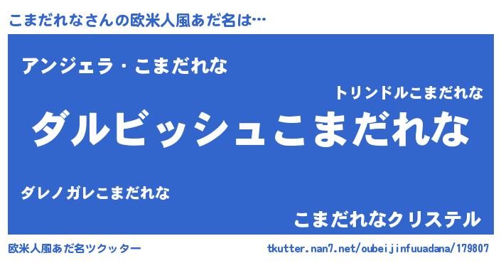 | 意味不明あだ名 | 『永久保存こまだれな』『自称こまだれな』 |