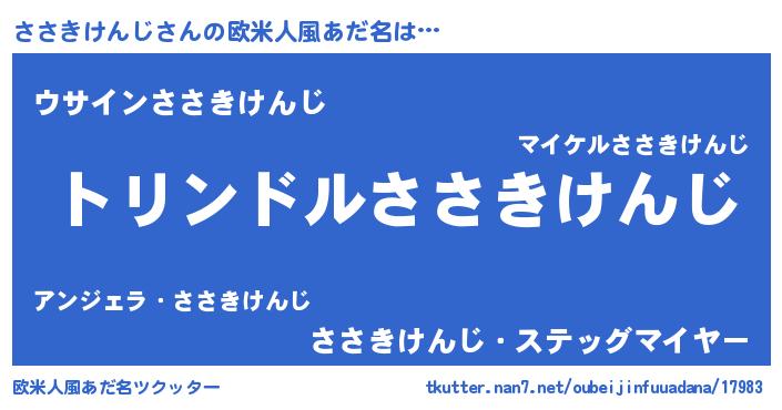 | 男性向けラノベタイトル風あだ名 | 『ササキケンジスレイヤー』 |