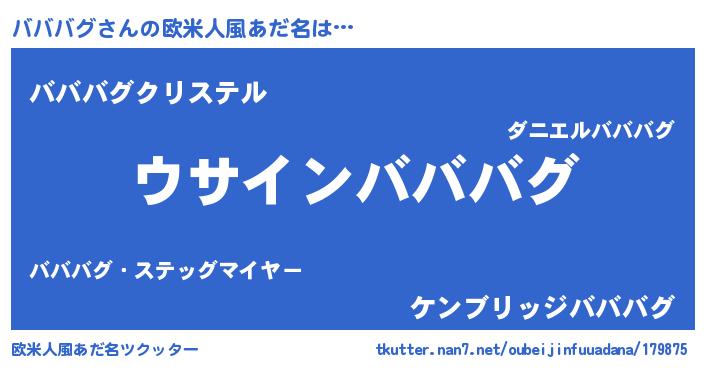| 男性向けラノベタイトル風あだ名 | 『バババグの嫁は女の子じゃないと思った?』 |
