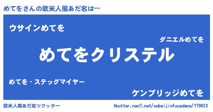 | 意味不明あだ名 | 『めてをフォーエバー』『自称めてを』 |