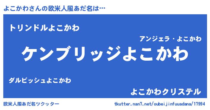 | 女子向けラノベタイトル風あだ名 | 『よこかわなんてお断りですっ。』 |