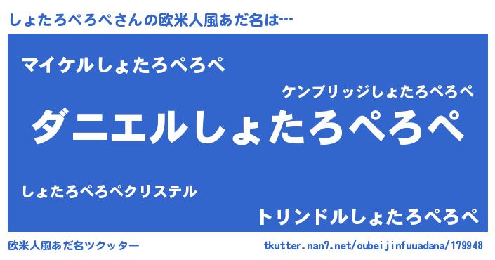 | 男性向けラノベタイトル風あだ名 | 『おまえをオタクにしてやるから、俺をしょたろぺろぺにしてくれ! 』 |