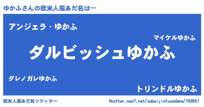 | 男性向けラノベタイトル風あだ名 | 『ゆかふという概念が存在しない退屈な世界 』 |