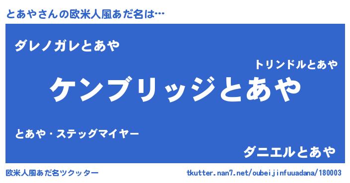 | 女子向けラノベタイトル風あだ名 | 『とあやストレイドッグス』 |