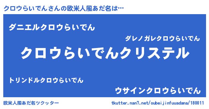 | 意味不明あだ名 | 『クロウらいでんフォーエバー』 |