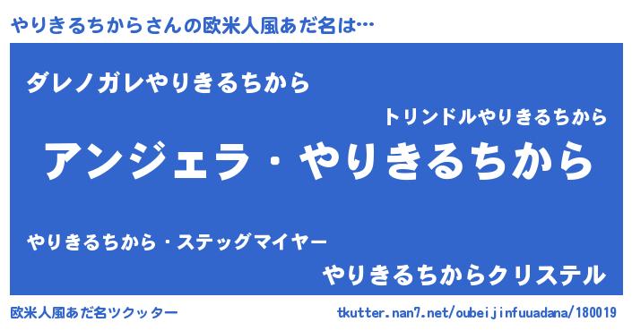 | 意味不明あだ名 | 『住所不定無職やりきるちから(43歳)』 |