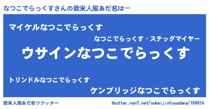 | 女子向けラノベタイトル風あだ名 | 『なつこでらっくすの卵を拾いまして』 |