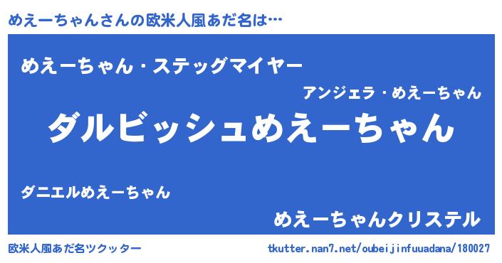 | 意味不明あだ名 | 『永久保存めえーちゃん』 |