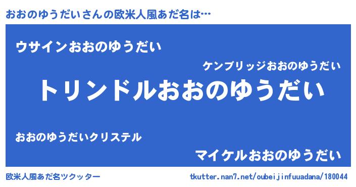 | 胡散臭い通販商品みたいなあだ名 | 『信頼と実績のサプリメント…その名も「おおのゆうだい」』 |