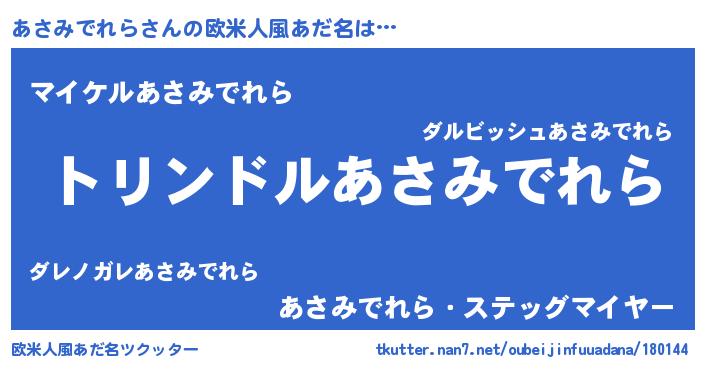 | 意味不明あだ名 | 『ヨモギ科あさみでれら属』 |