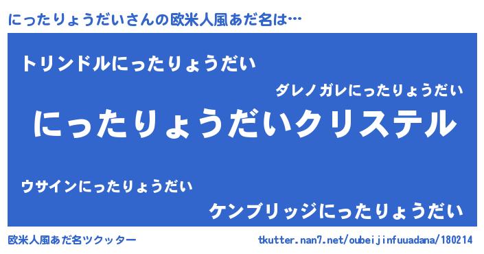 | 男性向けラノベタイトル風あだ名 | 『やはりにったりょうだいの青春ラブコメはまちがっている 』 |