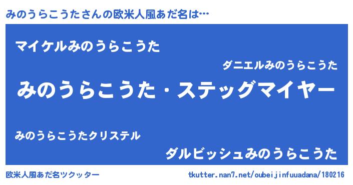 | 男性向けラノベタイトル風あだ名 | 『うちのみのうらこうたが世界を掌握している!』 |