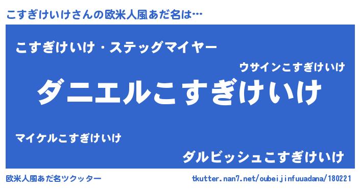 | ヘコむあだ名 | 『こすぎけいけ(遠い目)』『こすっちょ』 |
