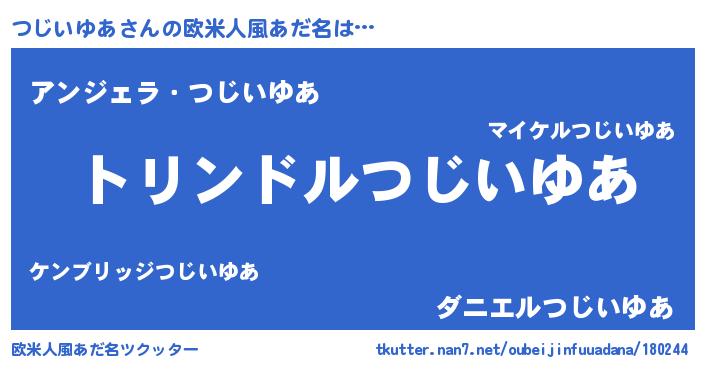 | 男性向けラノベタイトル風あだ名 | 『つじいゆあ~年齢イコール彼女いない歴の魔法使い~』 |