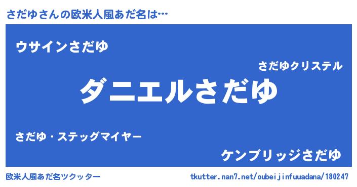 | 女子向けラノベタイトル風あだ名 | 『死神さだゆの再婚』『さだゆ様がみてる』 |