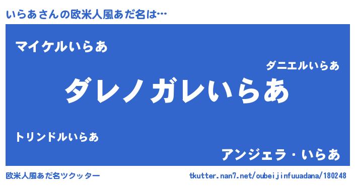 | 男性向けラノベタイトル風あだ名 | 『この素晴らしい世界にいらあを!』 |