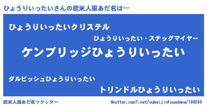 | 胡散臭い通販商品みたいなあだ名 | 『テレビで話題のアガリクス…その名も「ひょうりいったい」』 |