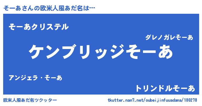 | 意味不明あだ名 | 『自称そーあ』『そーあフォーエバー』 |