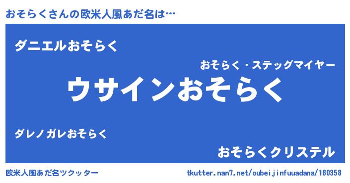| ヒーロー風カッコイイあだ名 | 『黄金騎士オソ』『天空の使者おそらく』 |