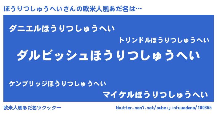 | 胡散臭い通販商品みたいなあだ名 | 『絶対に幸福をもたらす水素水…その名も「ほうりつしゅうへい」』 |