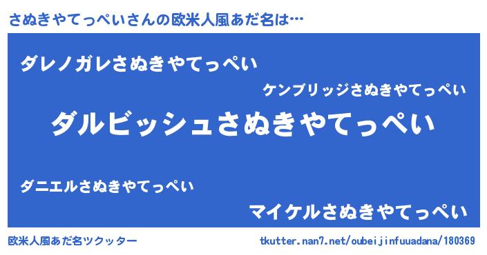 | 意味不明あだ名 | 『永久保存さぬきやてっぺい』 |