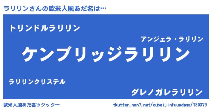 | 女子向けラノベタイトル風あだ名 | 『ラリリンなんてお断りですっ。』 |