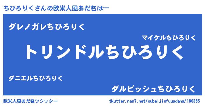| 男性向けラノベタイトル風あだ名 | 『ちひろりく~年齢イコール彼女いない歴の魔法使い~』 |