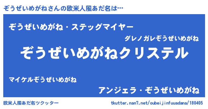 | 意味不明あだ名 | 『ぞうぜいめがねフォーエバー』 |