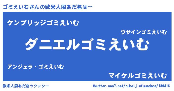 | ヒーロー風カッコイイあだ名 | 『天空の使者ゴミえいむ』『銀牙騎士ゴミ』 |