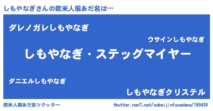 | 意味不明あだ名 | 『住所不定無職しもやなぎ(10歳)』 |