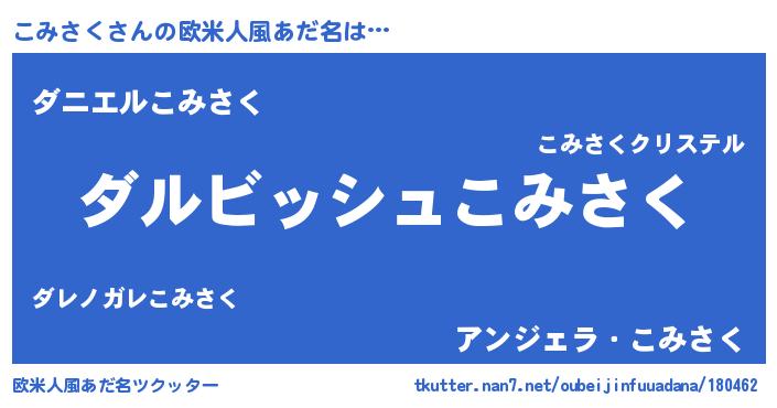 | ヘコむあだ名 | 『こみさく(遠い目)』『豆乳』 |