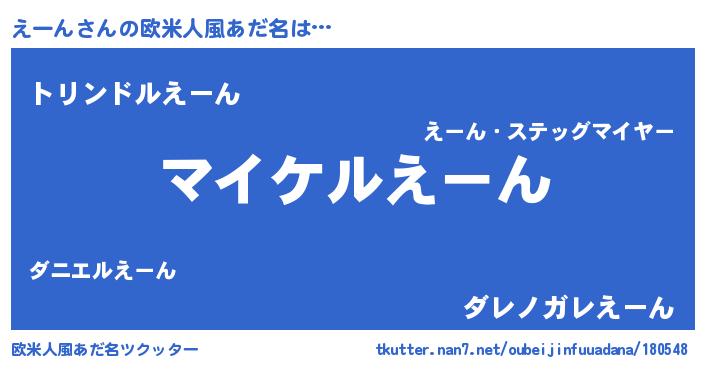 | 男性向けラノベタイトル風あだ名 | 『えーんの憂鬱』『魔弾の王とえーん』 |