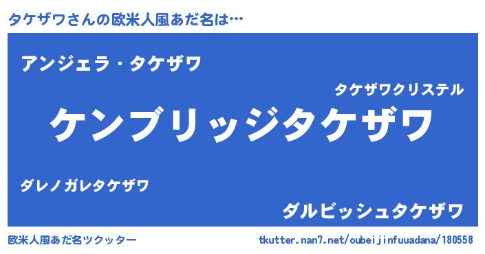 | 意味不明あだ名 | 『自称タケザワ』『永久保存タケザワ』 |