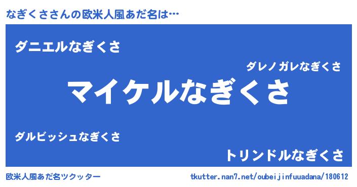 | 胡散臭い通販商品みたいなあだ名 | 『モテモテ間違いなし水晶球…その名も「なぎくさ」』 |