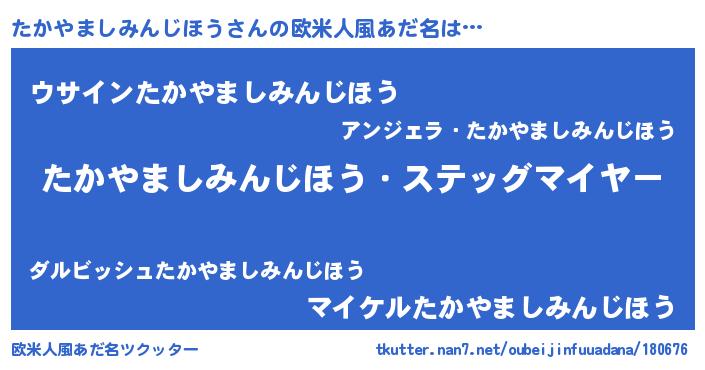 たかやましみんじほうさんの欧米人風あだ名をツクッター!