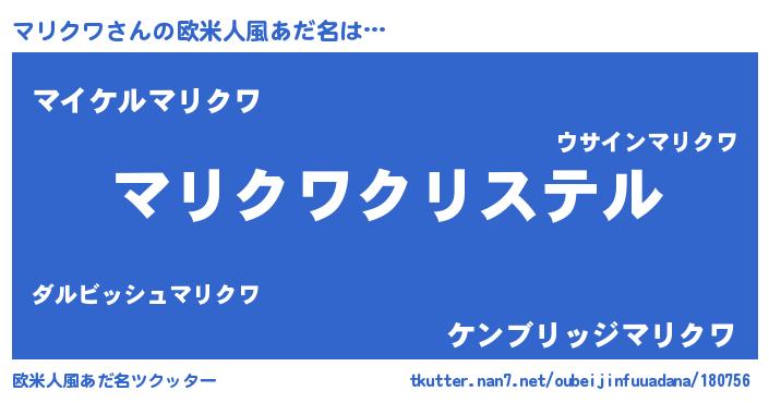 | 男性向けラノベタイトル風あだ名 | 『やはりマリクワの青春ラブコメはまちがっている 』 |