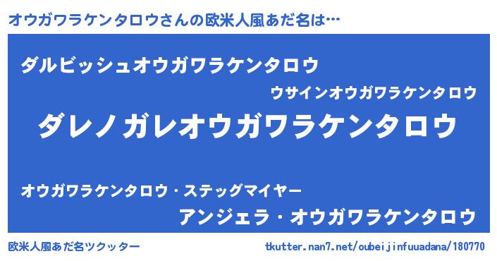 | 男性向けラノベタイトル風あだ名 | 『魔弾の王とオウガワラケンタロウ』 |