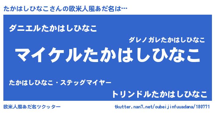| 女子向けラノベタイトル風あだ名 | 『(仮)たかはしひなこのやんごとなき事情』 |